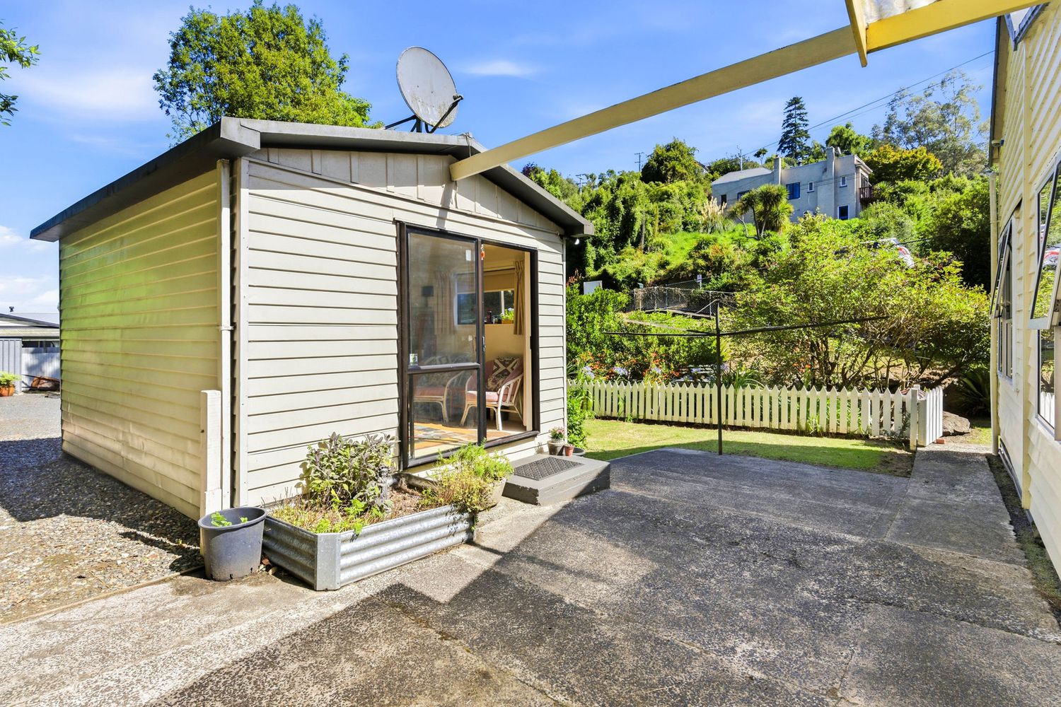 Beyond the main home, a modern sleepout or hobbies room adds valuable flexibility — ideal as a studio, work-from-home office, creative retreat, or guest accommodation, and complete with its own heat pump for year-round comfort. The established, sheltered garden is beautifully maintained and easy care, creating a private sanctuary without the upkeep.