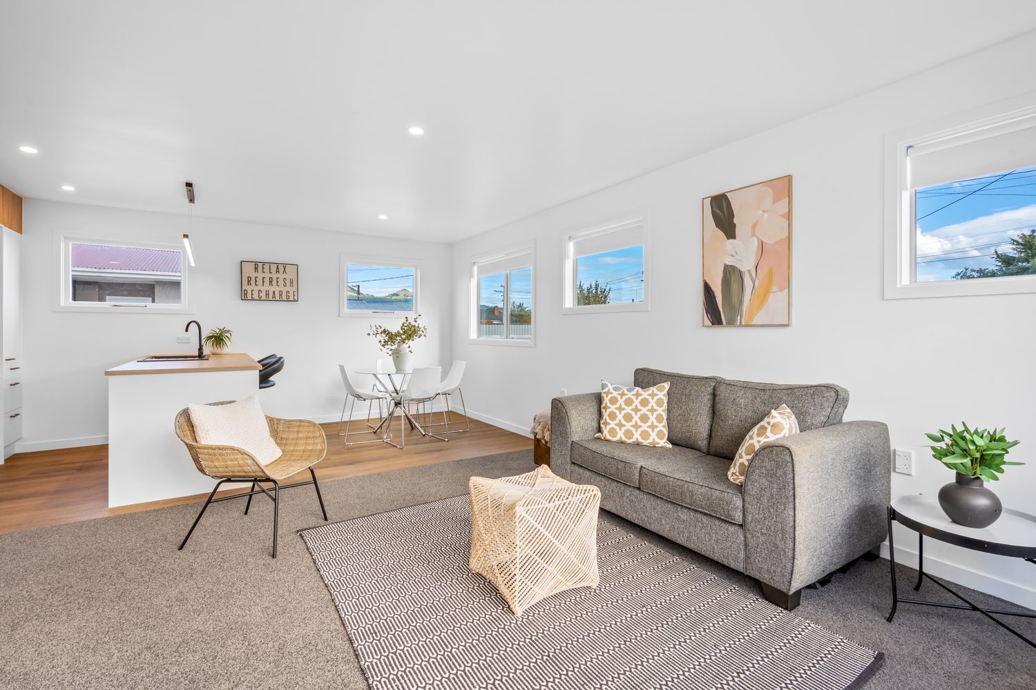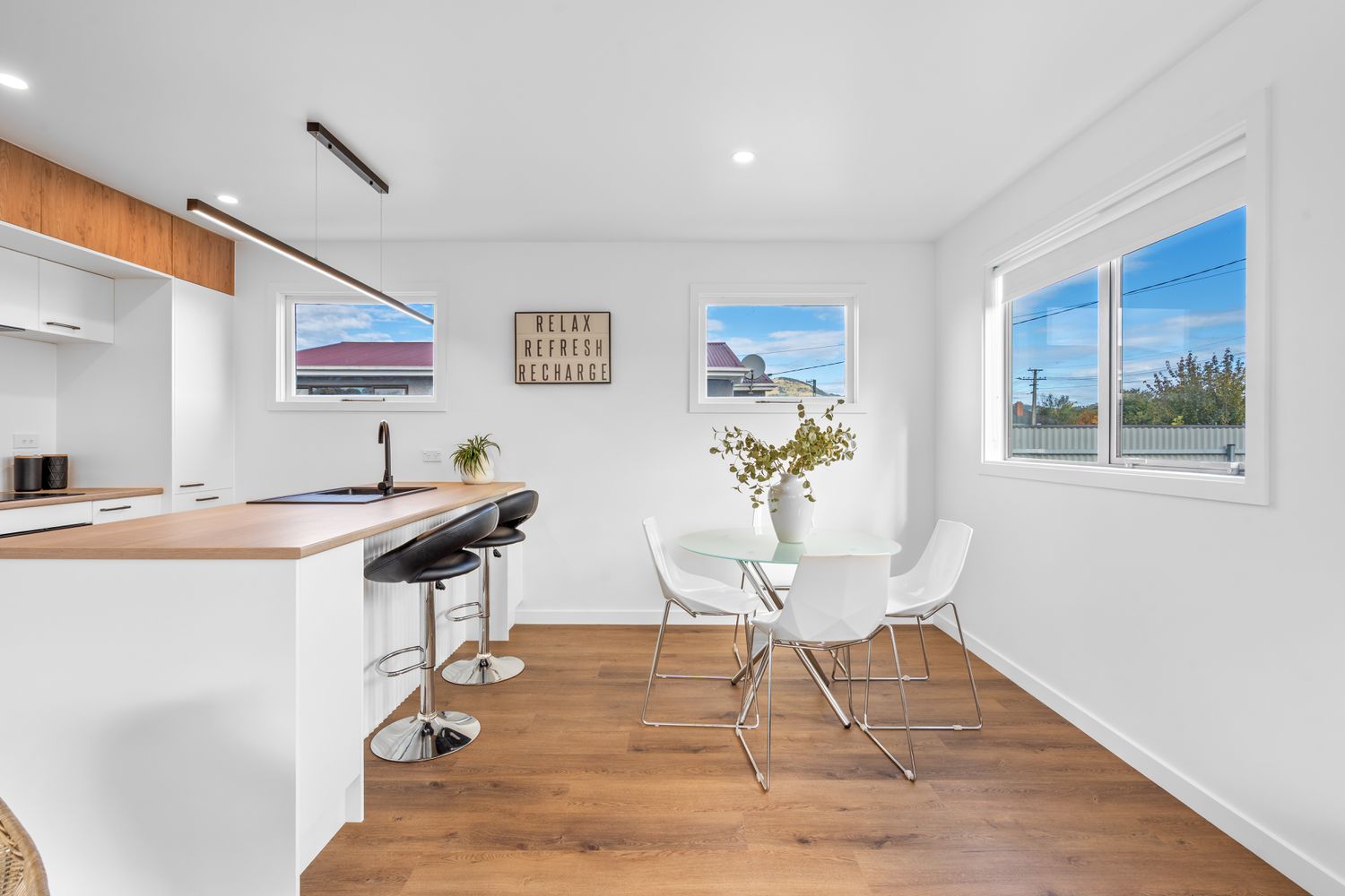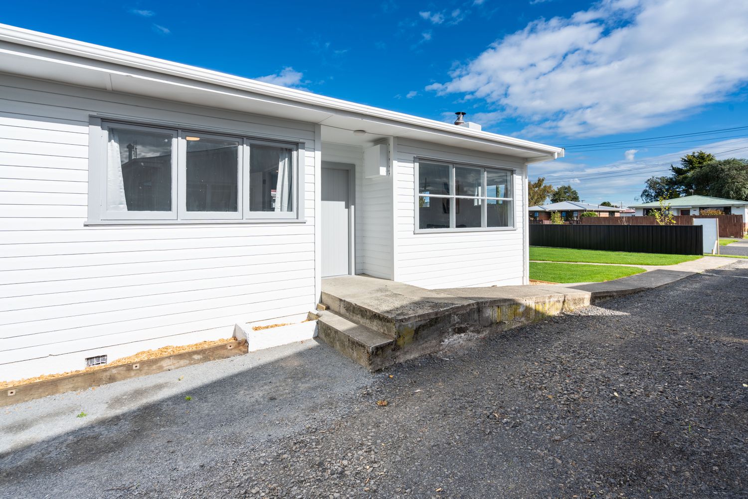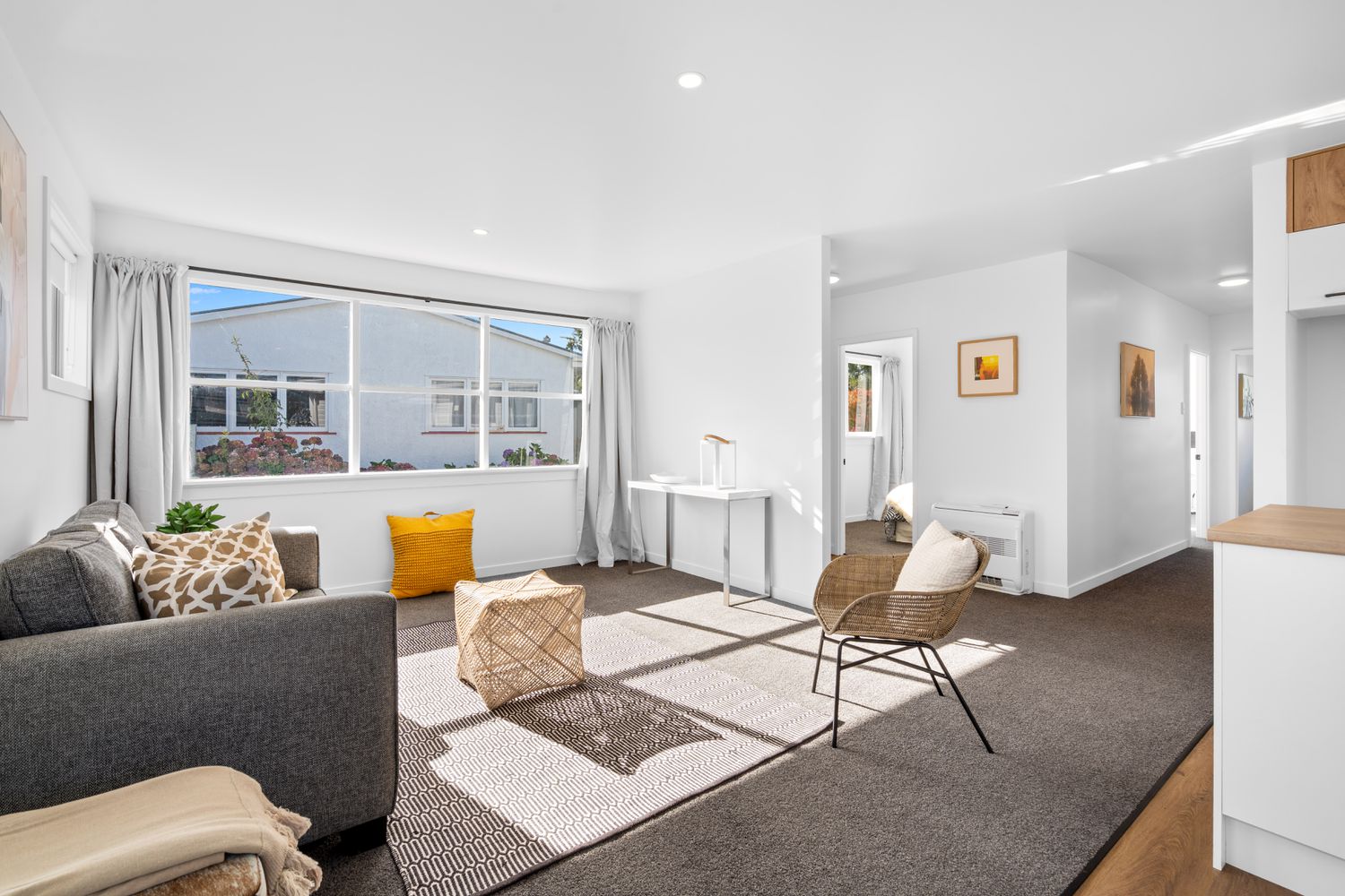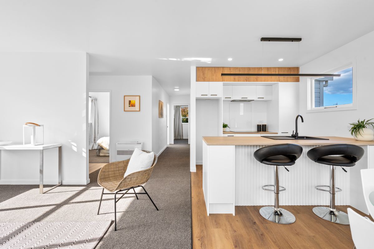 Step into effortless modern living at 66 Forfar Street, where from the moment you arrive you’re welcomed by generous off-street parking and beautifully landscaped grounds, complete with a sunny grassed area that sets a warm and inviting tone; as you follow the concrete pathway inside, the home opens to a light-filled contemporary kitchen that seamlessly connects with the dining and living spaces, creating a cohesive open-plan hub ideal for both relaxed everyday living and entertaining, enhanced by fresh vinyl flooring in the kitchen, plush new carpet throughout, and a heat pump in the hallway ensuring year-round comfort, while large windows flood the interiors with natural light and frame pleasant outlooks; down the hall, three well-proportioned bedrooms offer peaceful retreats, each enjoying excellent sun and space, with one positioned to overlook the backyard, and the layout is further complemented by a modern bathroom featuring a shower over bath, sleek floating vanity, and clean, contemporary finishes, alongside a practical separate laundry with easy outdoor access; combining style, functionality, and a welcoming feel throughout, this move-in-ready home presents an outstanding opportunity for first-home buyers, investors, or those seeking a fresh, low-maintenance lifestyle in a bright and inviting setting.