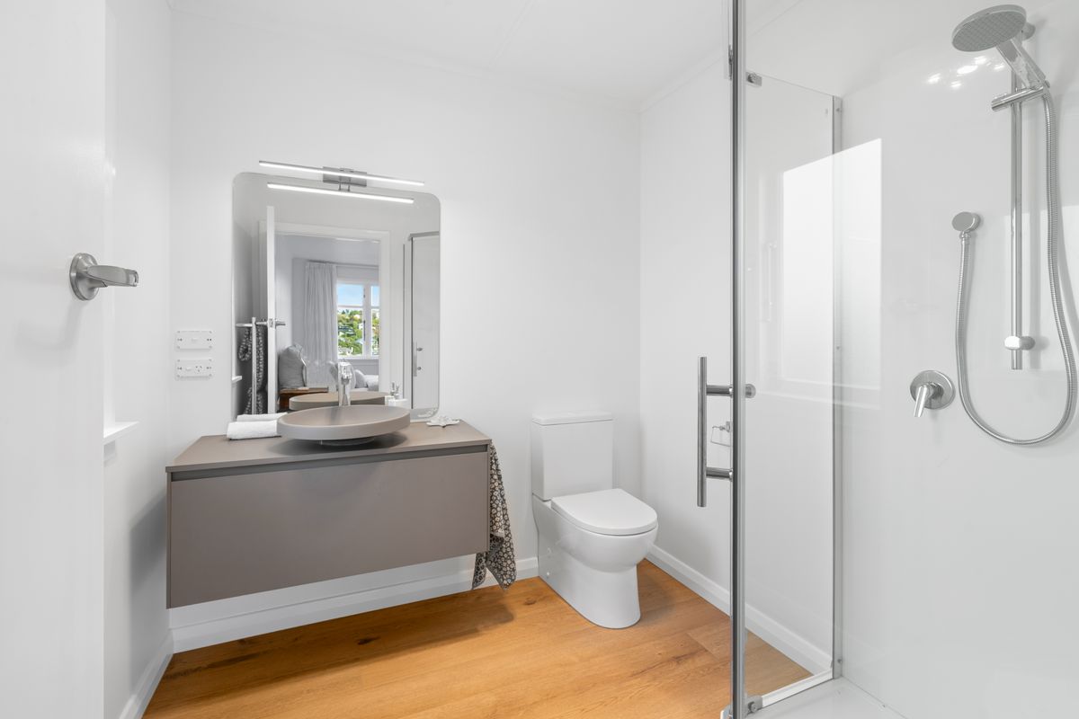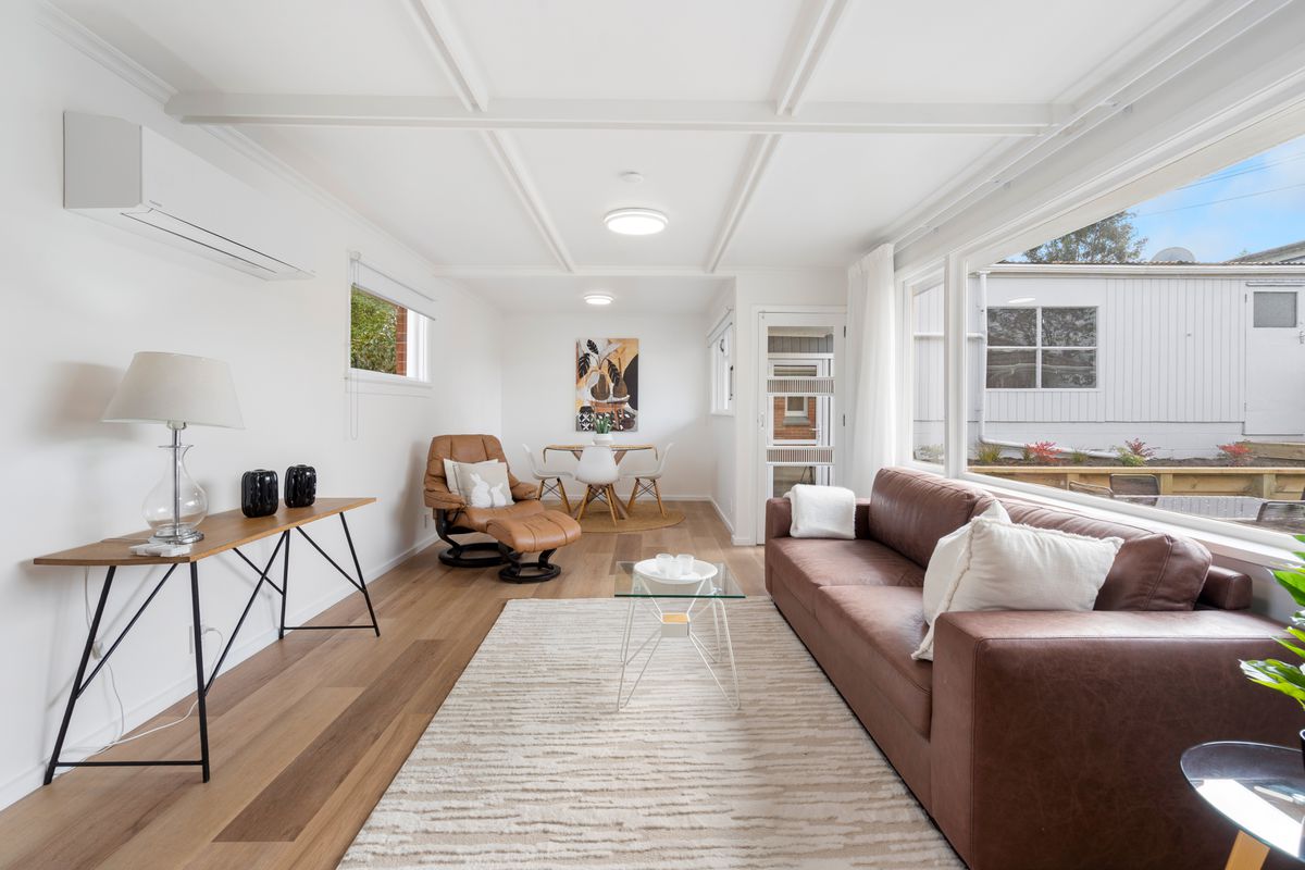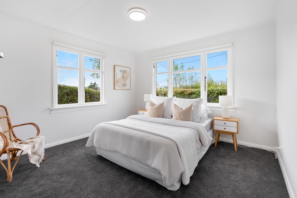 The home offers four generous bedrooms, including a master with ensuite and elevated outlook, plus a fully renovated family bathroom. A heat pump ensures year-round comfort, while the dedicated laundry adds practicality.